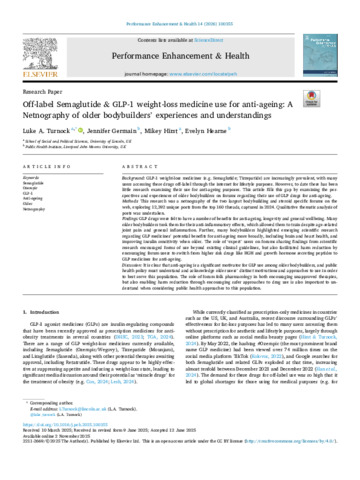 Off-label Semaglutide & GLP-1 weight-loss medicine use for anti-ageing: A Netnography of older bodybuilders’ experiences and understandings.