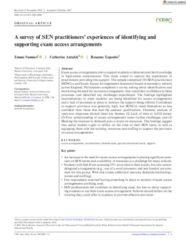 A survey of SEN practitioners' experiences of identifying and supporting exam access arrangements.