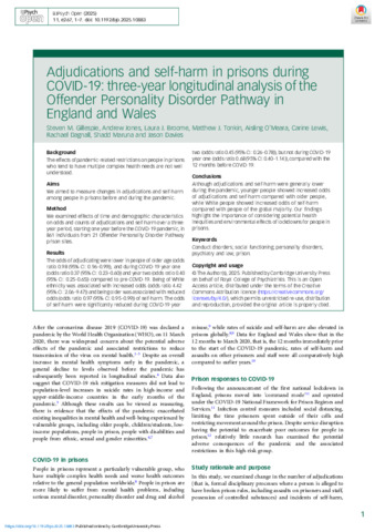 Adjudications and self-harm in prisons during COVID-19: three-year longitudinal analysis of the Offender Personality Disorder Pathway in England and Wales.