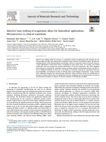 Selective laser melting of magnesium alloys for biomedical applications microstructure to clinical translation.pdf - Published Version Available under License Creative Commons Attribution Non-commercial. Download (36MB) | Preview |