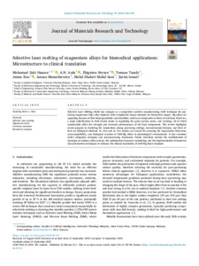 Selective laser melting of magnesium alloys for biomedical applications: Microstructure to clinical translation.
