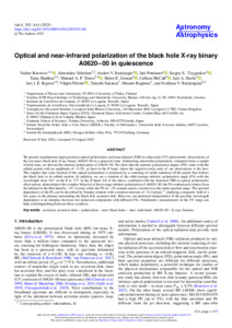 Optical and near infrared polarization of the black hole Xray binary A062000 in quiescence.pdf - Published Version Available under License Creative Commons Attribution. Download (2MB) | Preview |
