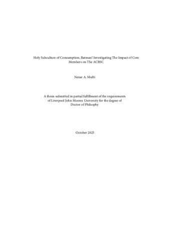Mufti, N (2025) Holy Subculture of Consumption Batman! Investigating The Impact of Core Members on The ACBSC. Doctoral thesis, Liverpool John Moores University.