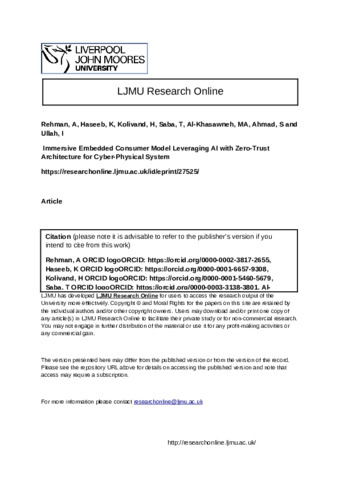 Immersive Embedded Consumer Model Leveraging AI with Zero Trust Architecture for Cyber Physical System.pdf - Accepted Version Download (8MB) | Preview |