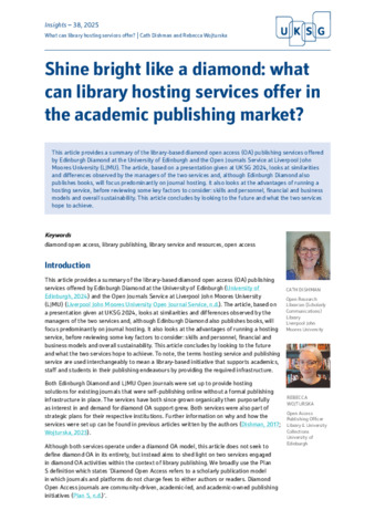 Shine bright like a diamond what can library hosting services offer in the academic publishing market.pdf - Published Version Available under License Creative Commons Attribution. Download (281kB) | Preview |
