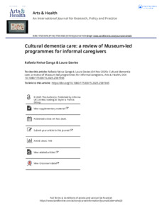 Cultural dementia care a review of Museum-led programmes for informal caregivers.pdf - Published Version Available under License Creative Commons Attribution Non-commercial No Derivatives. Download (1MB) | Preview |