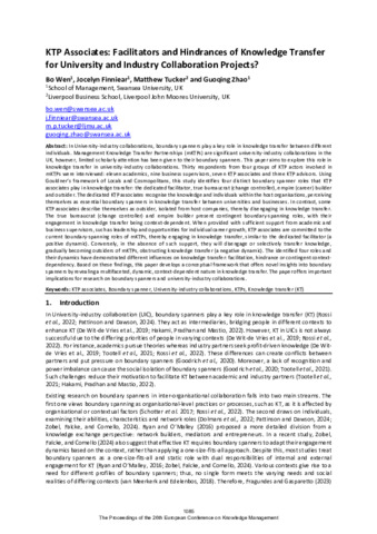 KTP Associates: Facilitators and Hindrances of Knowledge Transfer for University and Industry Collaboration Projects?