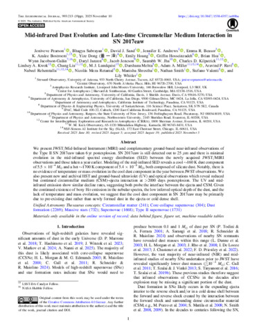 Midinfrared Dust Evolution and Latetime Circumstellar Medium Interaction in SN 2017eaw.pdf - Published Version Available under License Creative Commons Attribution. Download (17MB) | Preview |