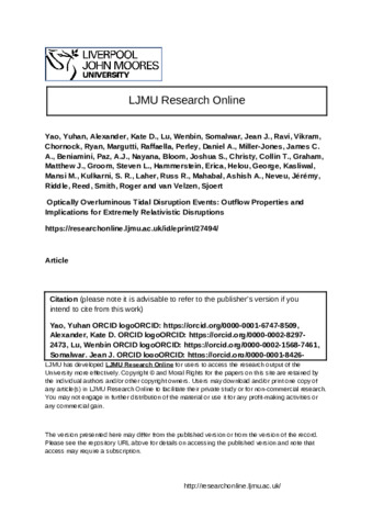 Optically Overluminous Tidal Disruption Events Outflow Properties and Implications.pdf - Published Version Available under License Creative Commons Attribution. Download (4MB) | Preview |