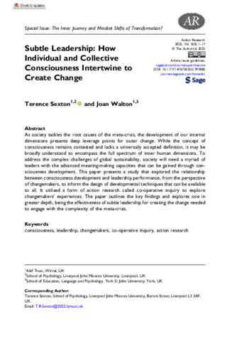 Subtle Leadership How individual and collective consciousnes intertwine to create change.pdf - Published Version Available under License Creative Commons Attribution. Download (751kB) | Preview |
