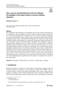 How a process of subjectification in ITE can challenge the paradigm of the expert teacher in primary religious education.