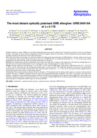 The most distant optically polarised GRB afterglow GRB 240419A at z = 5 178.pdf - Published Version Available under License Creative Commons Attribution. Download (2MB) | Preview |