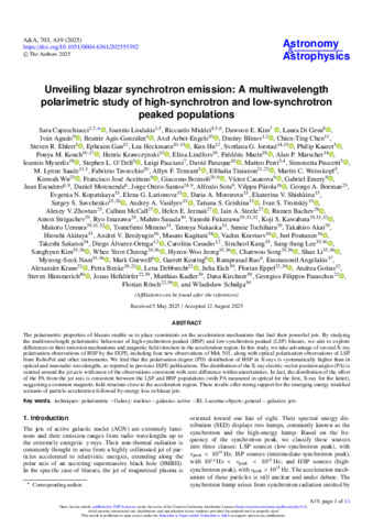 Unveiling blazar synchrotron emission A multiwavelength polarimetric study of high synchrotron and low synchrotron peaked populations.pdf - Published Version Available under License Creative Commons Attribution. Download (760kB) | Preview |