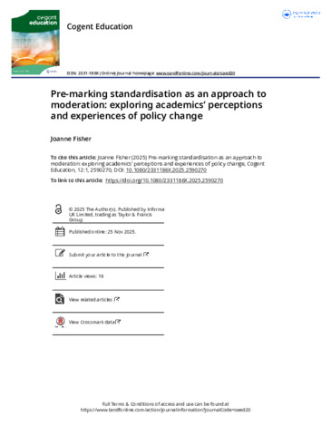 Pre-marking standardisation as an approach to moderation: exploring academics’ perceptions and experiences of policy change.