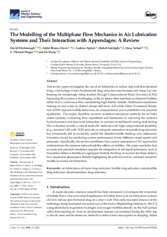 The Modelling of the Multiphase Flow Mechanics in Air Lubrication Systems and Their Interaction with Appendages: A Review.