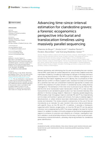 Advancing time since interval estimation for clandestine graves a forensic ecogenomics perspective.pdf - Published Version Available under License Creative Commons Attribution. Download (5MB) | Preview |