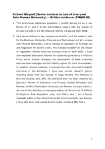 Richard Ridyard Senior Lecturer in Law at Liverpool John Moores University – Written evidence PMG0018.pdf - Published Version Available under License Open Government License. Download (92kB) | Preview |