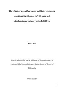Rice, J (2025) The effect of a gamified motor skill intervention on emotional intelligence in 9-10-year-old disadvantaged primary school children. Doctoral thesis, Liverpool John Moores University.