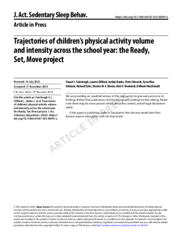 Trajectories of children’s physical activity volume and intensity across the school year: the Ready, Set, Move project.