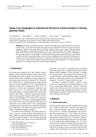Using xray rheography to estimate the 3D field of inertial numbers in flowing granular media.pdf - Published Version Available under License Creative Commons Attribution. Download (930kB) | Preview |