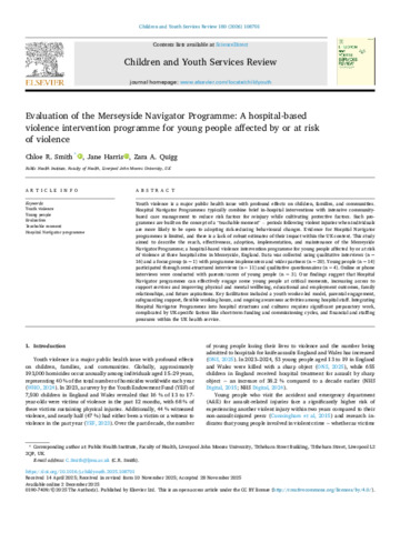 Evaluation of the Merseyside Navigator Programme: A hospital-based violence intervention programme for young people affected by or at risk of violence.
