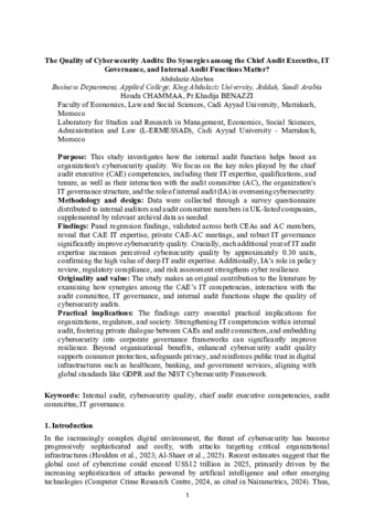 The Quality of Cybersecurity Audits Do Synergies among the Chief Audit Executive IT Governance and Internal Audit Functions Matter.pdf - Accepted Version Available under License Creative Commons Attribution. Download (547kB) | Preview |