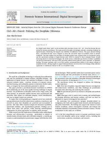 (The Digital Forensics Research Conference Europe, DFRWS EU 2026, 13th Annual Digital Forensics Research Conference Europe, 24th - 27th Mar 2026, Linköping, Sweden).