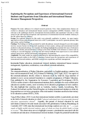 Originality The study makes an original contribution by demonstrating the extent of the compatibility between research studies in the field of education focused upon the perceptions and experiences of international doctoral students, and IHRM research into expatriates and their management