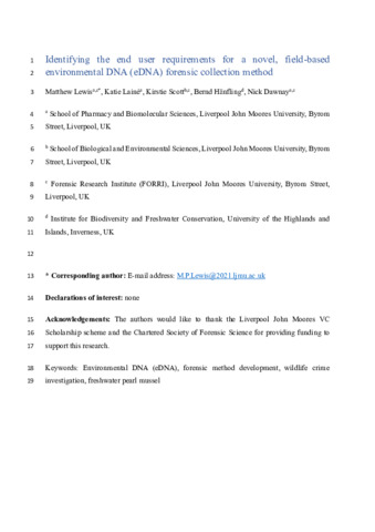 Identifying the end user requirements for a novel field based environmental DNA eDNA forensic collection method .pdf - Accepted Version Available under License Creative Commons Attribution. Download (562kB) | Preview |