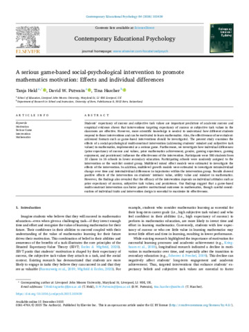 A serious game based social psychological intervention to promote mathematics motivation.pdf - Published Version Available under License Creative Commons Attribution. Download (1MB) | Preview |