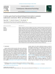 A serious game-based social-psychological intervention to promote mathematics motivation: Effects and individual differences.