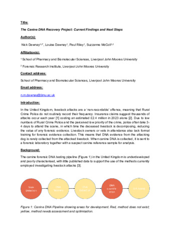 The Canine DNA Recovery Project Current Findings and Next.pdf - Accepted Version Download (497kB) | Preview |