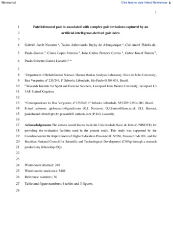 Patellofemoral pain is associated with complex gait deviations captured by an artificial intelligence derived gait index.pdf - Accepted Version Available under License Creative Commons Attribution. Download (1MB) | Preview |