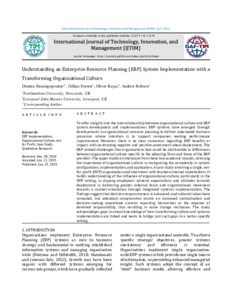 Understanding an Enterprise Resource Planning (ERP) System Implementation with a Transforming Organisational Culture.