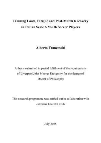 In summary, this thesis provides novel insights into training load, acute responses to training and match-play, and post-match recovery profiles of Italian Serie A youth soccer players. These findings offer practical recommendations for sport scientists and coaches seeking to optimise physical performance monitoring and refine training and recovery strategies in high-level adolescent soccer players.