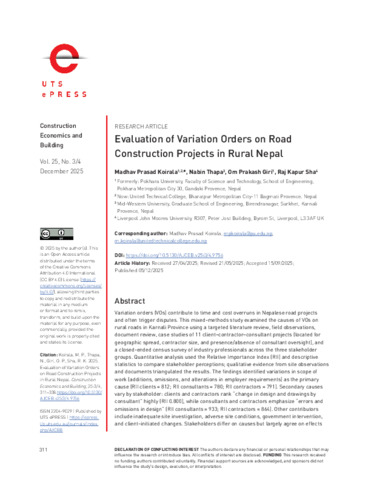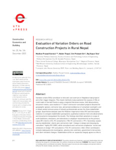 Evaluation of Variation Orders on Road project in Nepal_ CE and B Ppaers.pdf - Published Version Available under License Creative Commons Attribution. Download (1MB) | Preview |