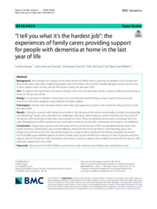 Mogan, C, Dening, KH, Dowrick, C, McCarrick, K and Lloyd-Williams, M (2025) "I tell you what it's the hardest job": the experiences of family carers providing support for people with dementia at home in the last year of life. BMC geriatrics, 26 (360). ISSN 1471-2318