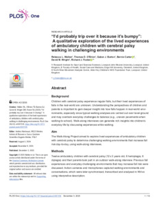 Id probably trip over it because its bumpy A qualitative exploration of the lived experiences of ambulatory children.pdf - Published Version Available under License Creative Commons Attribution. Download (1MB) | Preview |