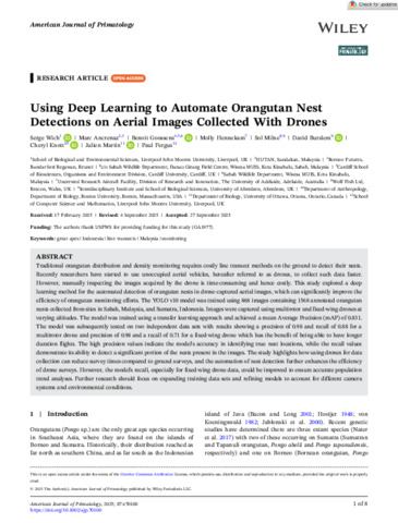 Using Deep Learning to Automate Orangutan Nest Detections on Aerial Images Collected With Drones.pdf - Published Version Available under License Creative Commons Attribution. Download (924kB) | Preview |