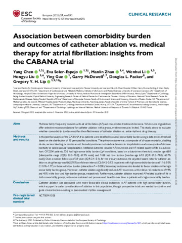 Association between comorbidity burden and outcomes of catheter ablation vs. medical therapy for atrial fibrillation: insights from the CABANA trial.