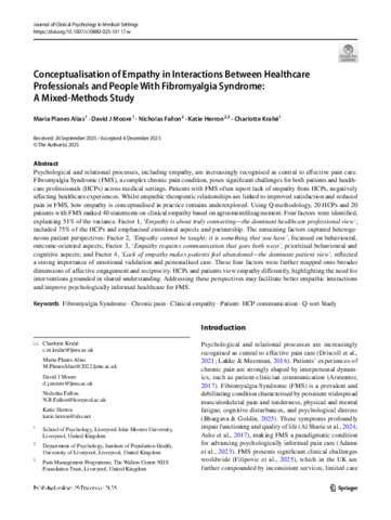 Conceptualisation of Empathy in Interactions Between Healthcare Professionals and People With Fibromyalgia Syndrome: A Mixed-Methods Study.