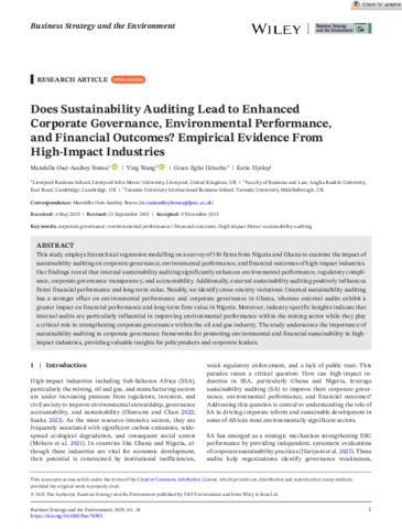 Bus Strat Env - 2026 - Bonsu - Does Sustainability Auditing Lead to Enhanced Corporate Governance Environmental.pdf - Published Version Available under License Creative Commons Attribution. Download (931kB) | Preview |
