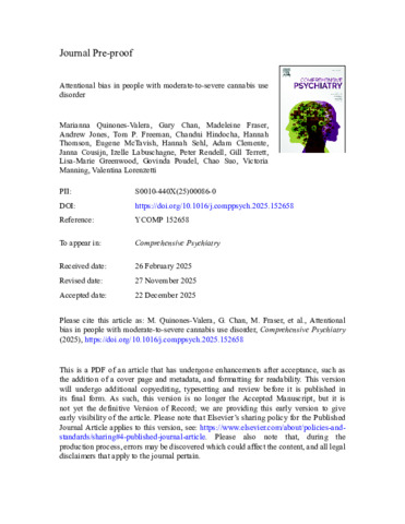 Attentional bias in people with moderate-to-severe cannabis use disorder.pdf - Accepted Version Available under License Creative Commons Attribution Non-commercial No Derivatives. Download (1MB) | Preview |