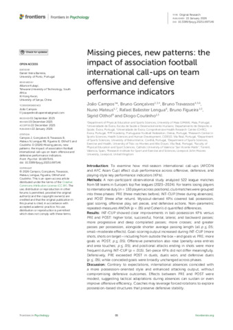 Missing Pieces, New Patterns: The Impact of Association Football International Call-Ups on Team Offensive and Defensive Performance Indicators.