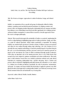 Approaches to leather production design and cultural value.pdf - Accepted Version Available under License Creative Commons Attribution Non-commercial Share Alike. Download (132kB) | Preview |