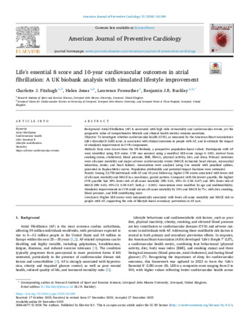 Life's essential 8 score and 10-year cardiovascular outcomes in atrial fibrillation- A UK biobank analysis with simulated lifestyle improvement.pdf - Published Version Available under License Creative Commons Attribution. Download (1MB) | Preview |