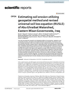 Estimating soil erosion utilizing geospatial method and revised universal soil loss equation (RUSLE) of Abu Ghraibat Watershed, Eastern Misan Governorate, Iraq.pdf - Published Version Available under License Creative Commons Attribution. Download (5MB) | Preview |
