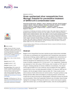 Green synthesized silver nanoparticles from Moringa: Potential for preventative treatment of SARS-CoV-2 contaminated water.