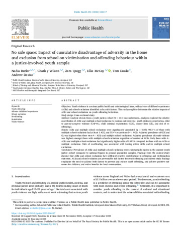 No safe space Impact of cumulative disadvantage of adversity in the home and exclusion from school on victimisation and offending behaviour within a justice-involved youth sample.pdf - Published Version Available under License Creative Commons Attribution. Download (680kB) | Preview |