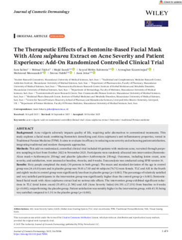 J of Cosmetic Dermatology - 2025 - Salimi - The Therapeutic Effects of a Bentonite‐Based Facial Mask With Alcea sulphurea.pdf - Published Version Available under License Creative Commons Attribution. Download (549kB) | Preview |